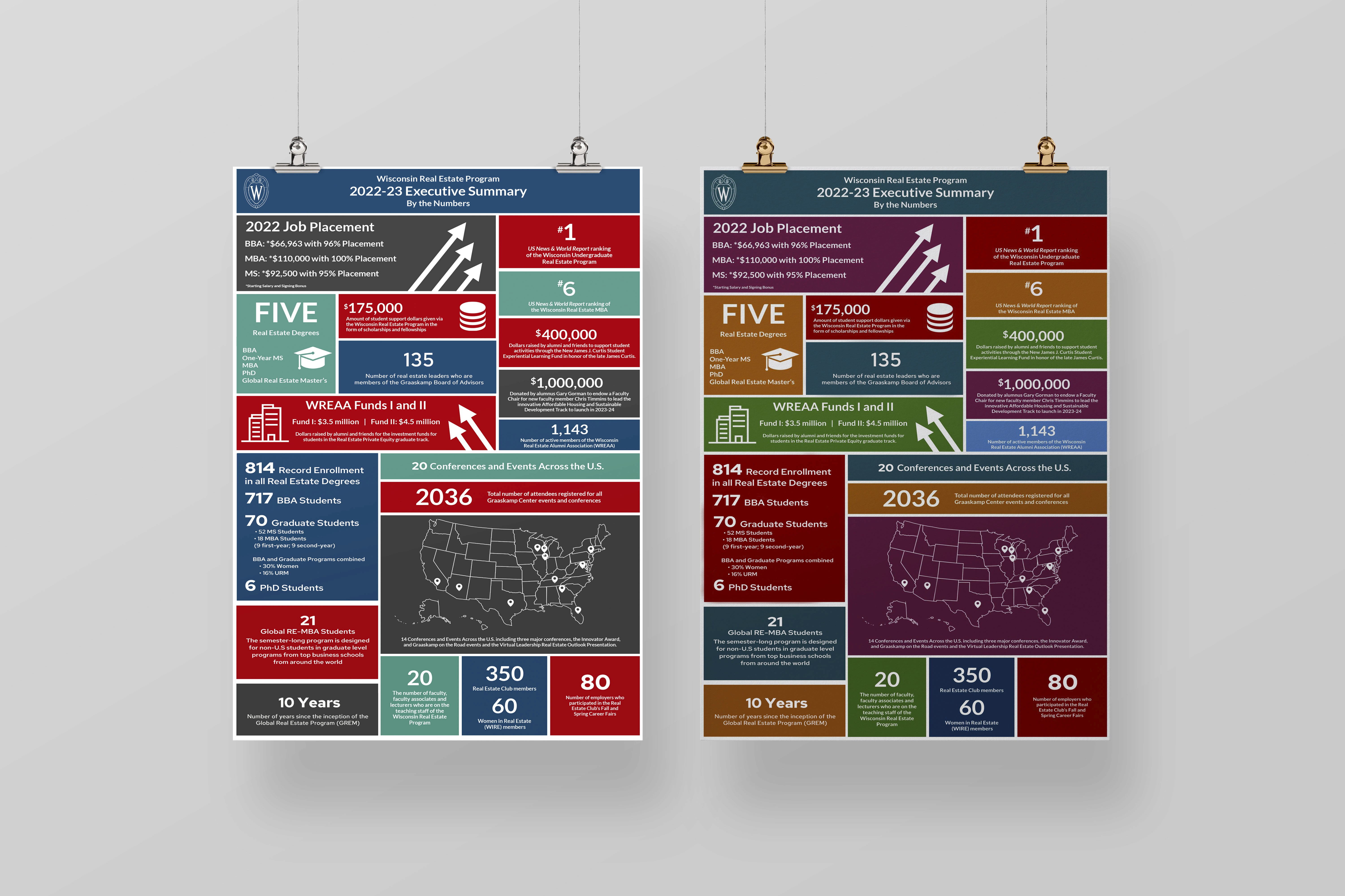 My internship at the James A Graaskamp Center for Real Estate at UW Madison has been an enriching journey that allowed me to delve into the dynamic realm of web and graphic design. Throughout this experience, I honed my skills across various design disciplines, with a particular focus on elevating corporate collateral. Working on projects for the center provided me with a hands-on opportunity to integrate my creativity into real-world applications, ensuring a seamless blend of aesthetics and functionality. The collaborative and innovative environment at the center allowed me to navigate diverse design challenges, ultimately refining my ability to produce impactful visual assets. This internship has not only expanded my technical proficiency but has also deepened my understanding of the intersection between design and the real estate industry, leaving me with a lasting appreciation for the power of thoughtful and strategic visual communication in a corporate context.